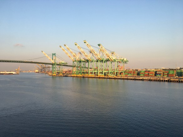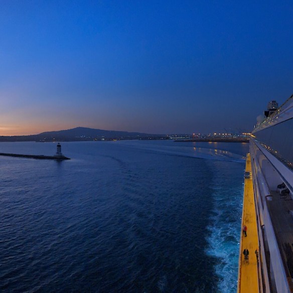 After plenty of hugs and kisses we waved goodby to our dear friends and casually made our way (ran) to the Palm Court, located in the upper bow, to see our ship pull away from the pier and watched as San Pedro slipped under a beautiful sunset toward the horizon.